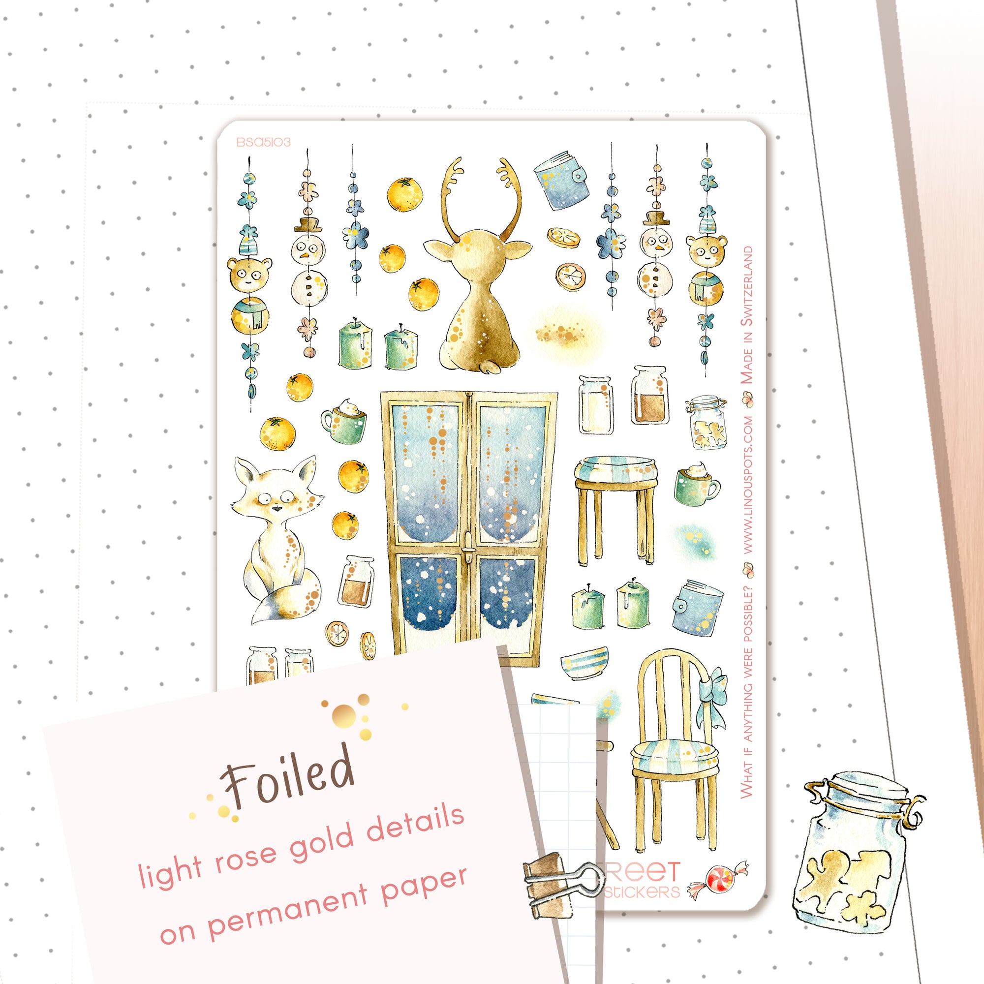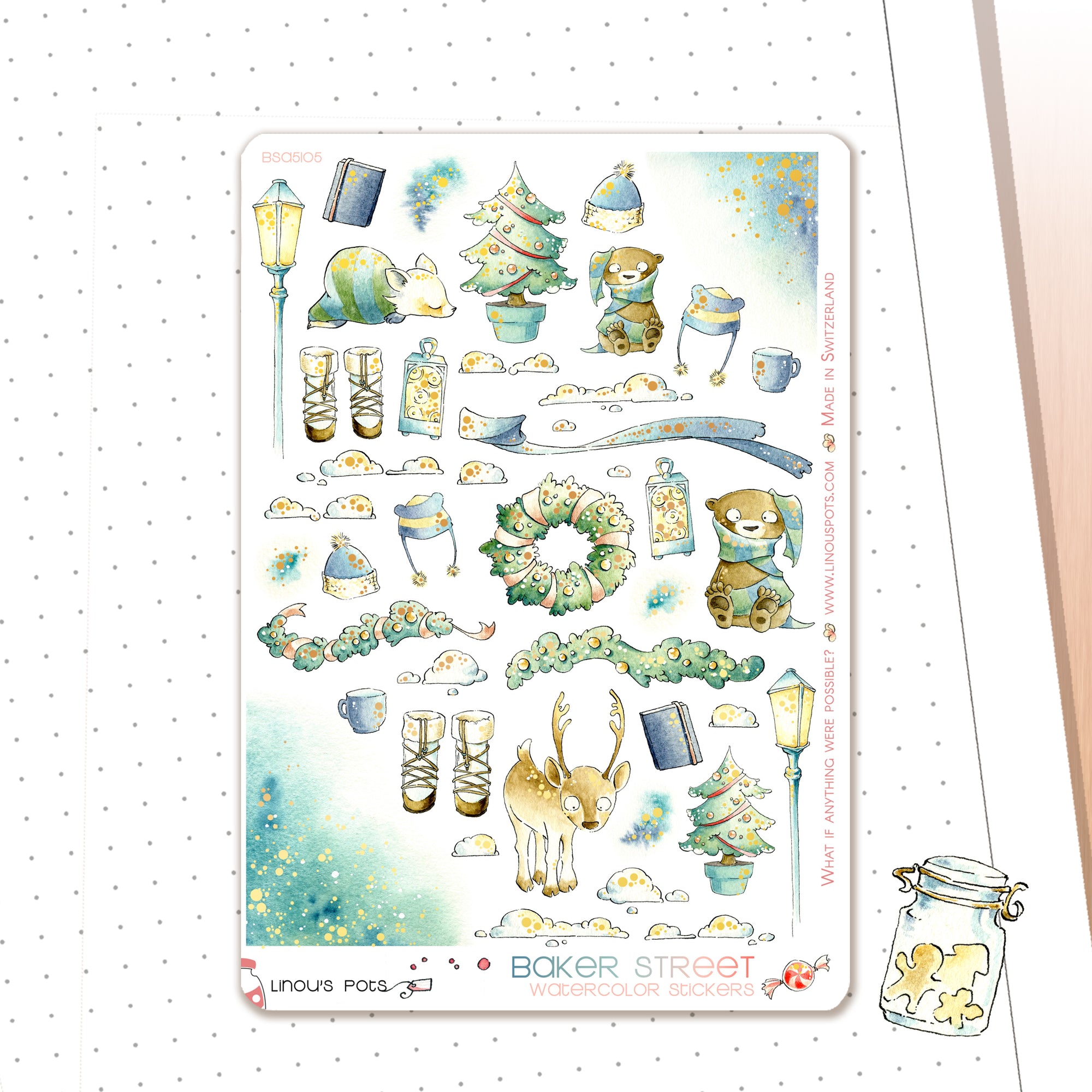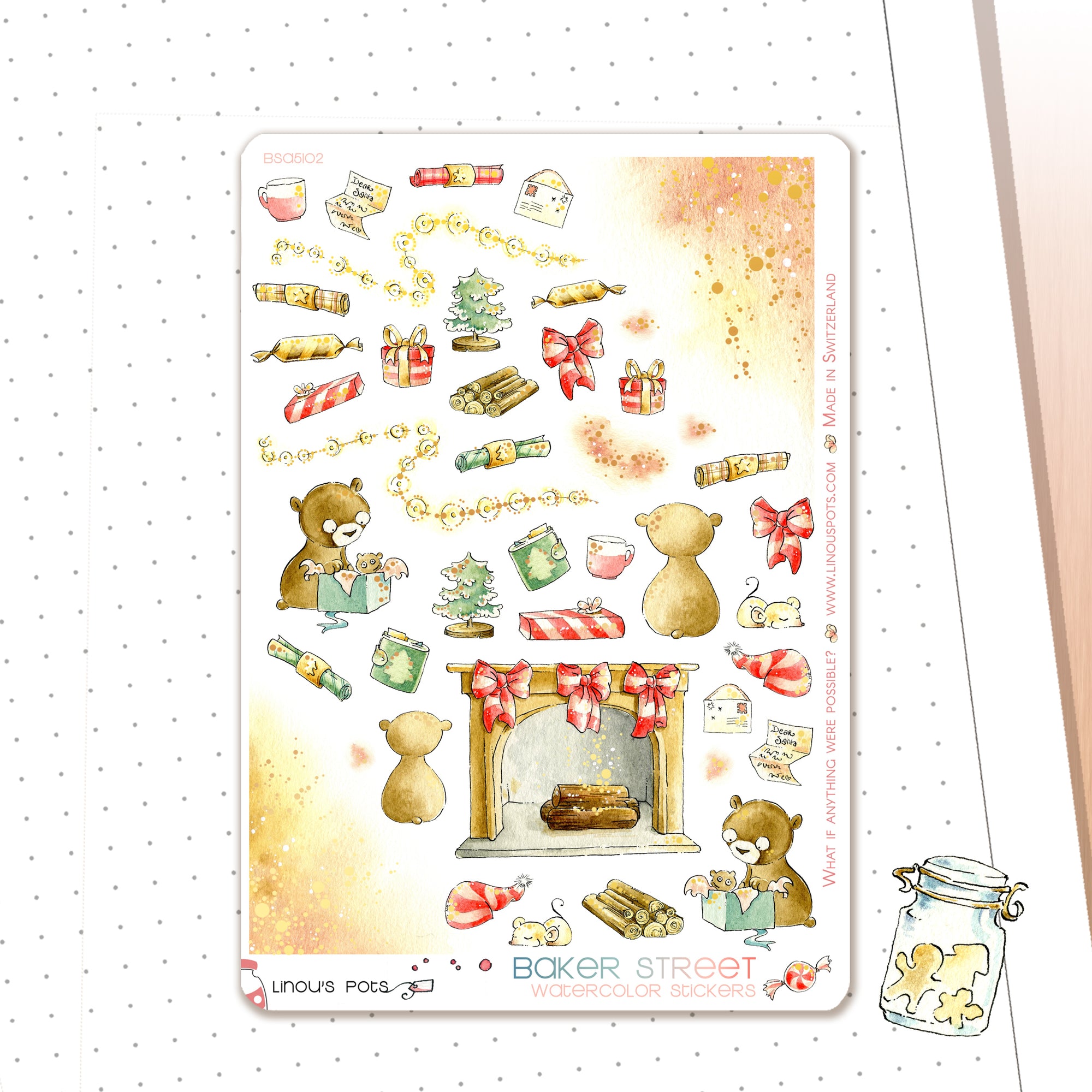 The warmth of a kitchen with the scent of gingerbread and tea, while outside it's snowing thickly, that's the atmosphere of “Baker Street” - our winter 2025 sticker collection.